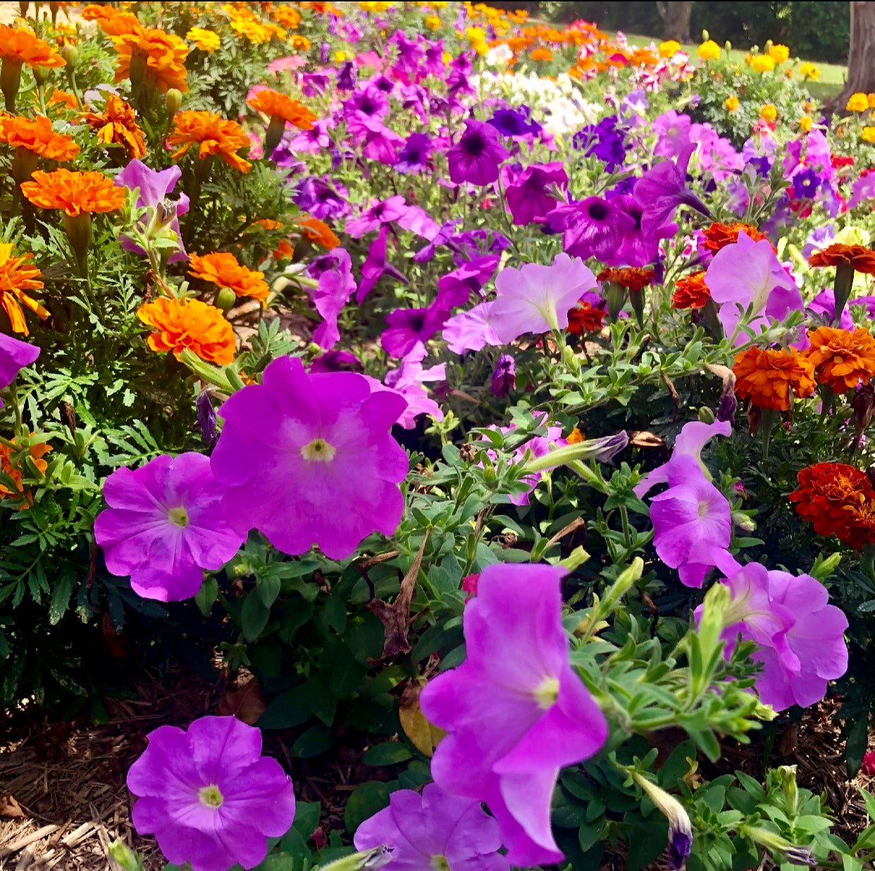 Bring the lively energy of a blooming garden into your space with this colourful garden flowers photo. Featuring a mix of red, purple, pink, and yellow blooms, this square-format botanical artwork captures the cheerful beauty and natural texture of a flourishing garden.