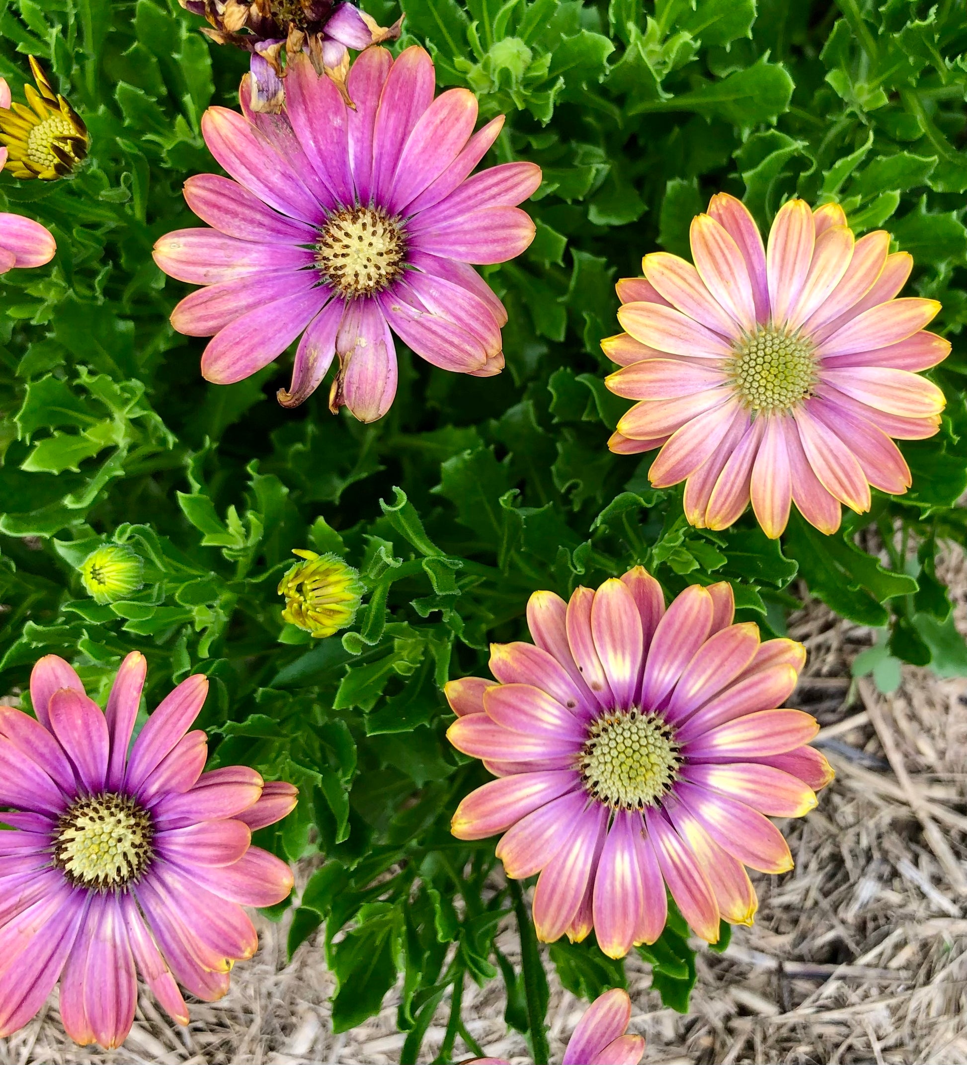 Brighten your home with this purple, pink, and yellow daisies printable wall art. This vibrant botanical flower photograph captures a beautiful blend of soft pink tones, rich purples, and warm golden-yellow centres, creating a lively yet elegant floral statement.