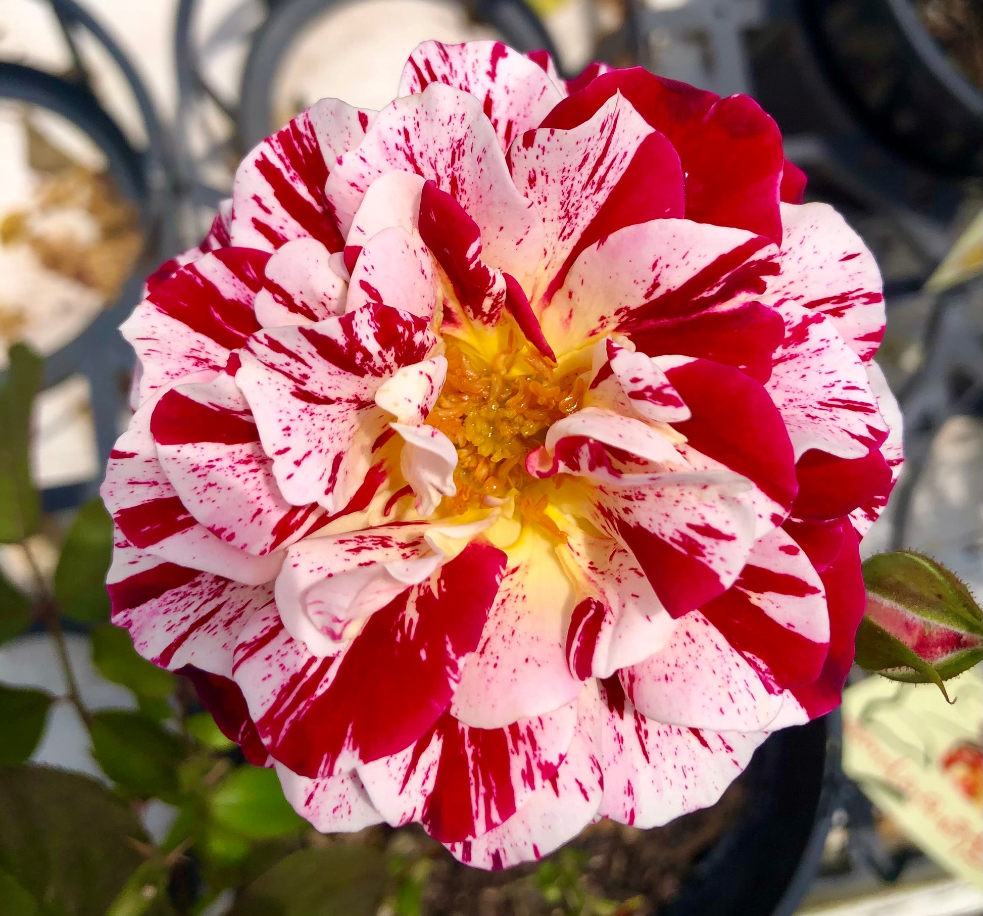 Make a bold statement with this striking red and white striped rose wall art printable. Featuring dramatic variegated petals with vivid crimson streaks over soft white tones and a warm golden center, this high-resolution botanical photograph captures the unique beauty of a one-of-a-kind garden bloom.